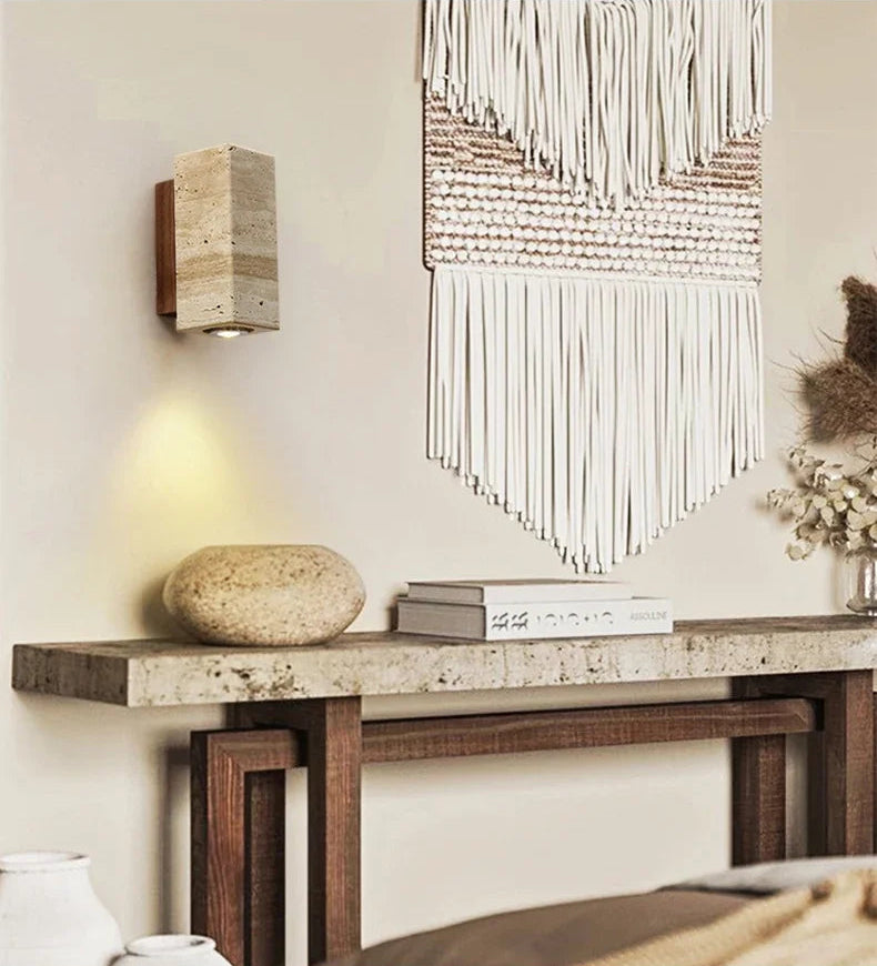 Sculptée dans du travertin naturel, cette applique murale incarne l’élégance brute et l’esprit wabi-sabi. Sa matière minérale et ses nuances uniques apportent chaleur et authenticité à votre intérieur, tout en diffusant une lumière douce et apaisante.